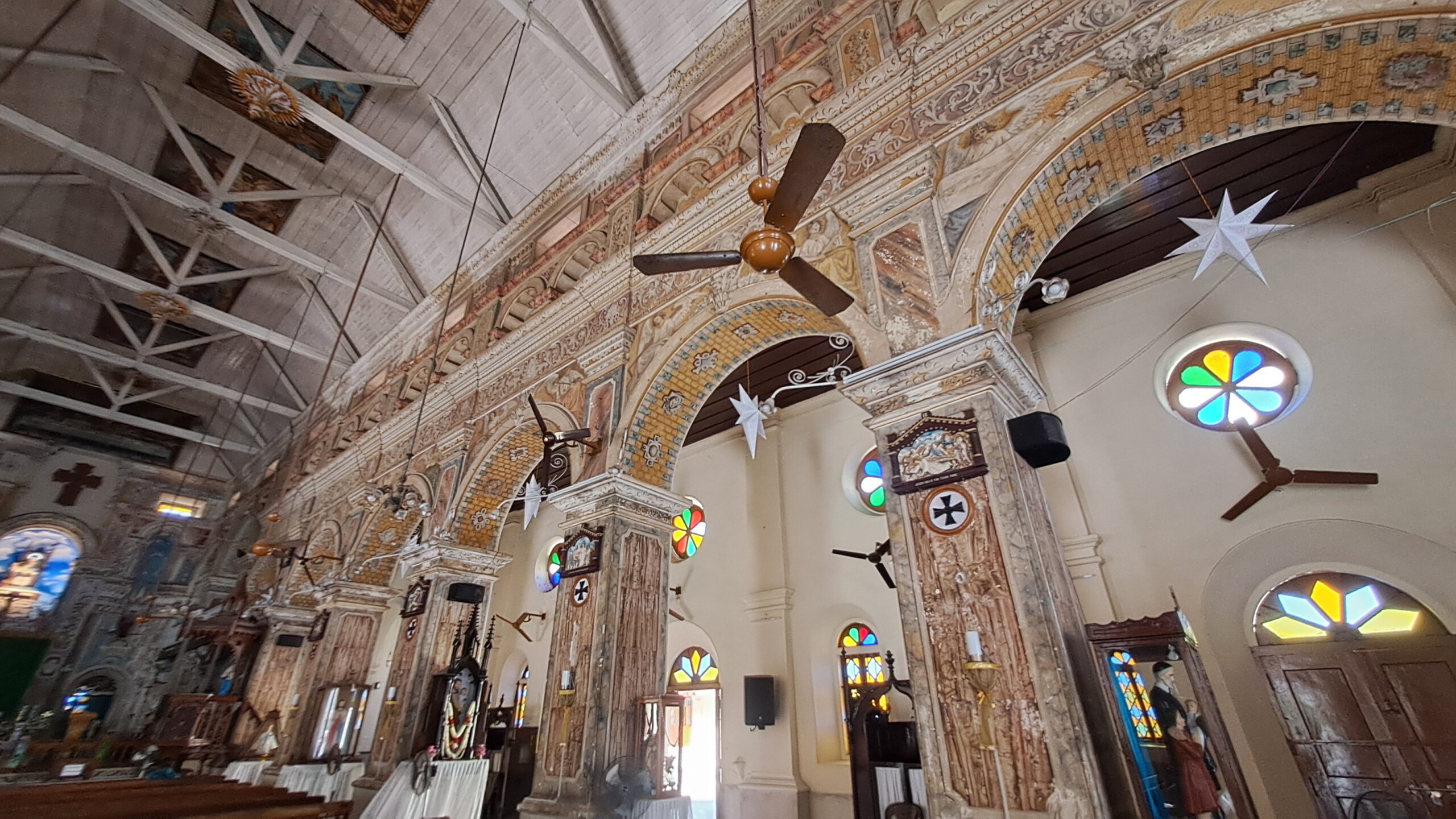 Am Mittwoch machen wir eine Stadtrundfahrt in einer Rikscha. Unser Fahrer zeigt uns den beliebten Sunset-Point westlich von den chinesischen Netzen und fährt durch den trubeligen Markt zur Santa Cruz Basilika. Sie gilt als eine der schönsten Kirchen des Landes und hat auch eine spannende Vergangenheit. 1505 erbaut von den Portugiesen, 1558 zur Kathedrale ernannt, von niederländischen Eroberern ausnahmsweise nicht abgerissen, was mit vielen katholischen Kirchen passierte. Den Abriss haben dann 1795 die Briten übernommen. Hundert Jahre später wurde ein Neubau in Auftrag gegeben und zehn Jahre später fertiggestellt. Pabst Johannes Paul II. hat die Kirche 1984 zur Basilika erhoben, dafür gibt es auch ein päpstliches Symbol über der Mitteltür.