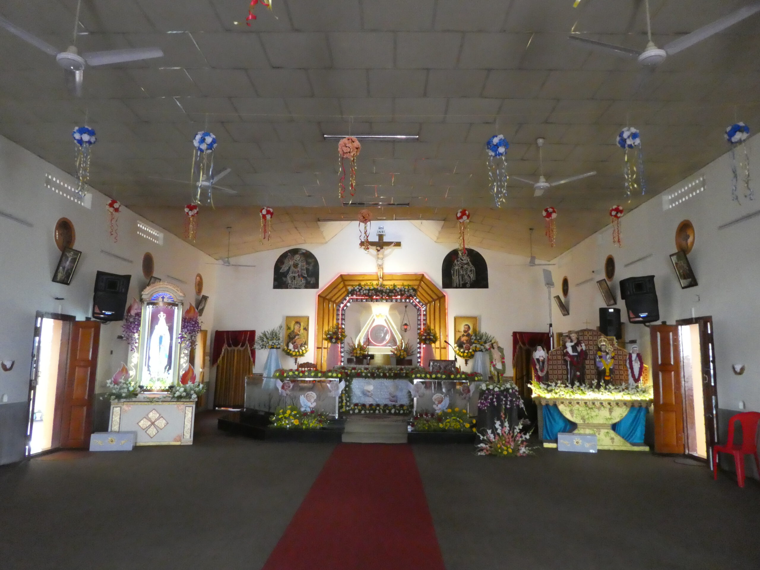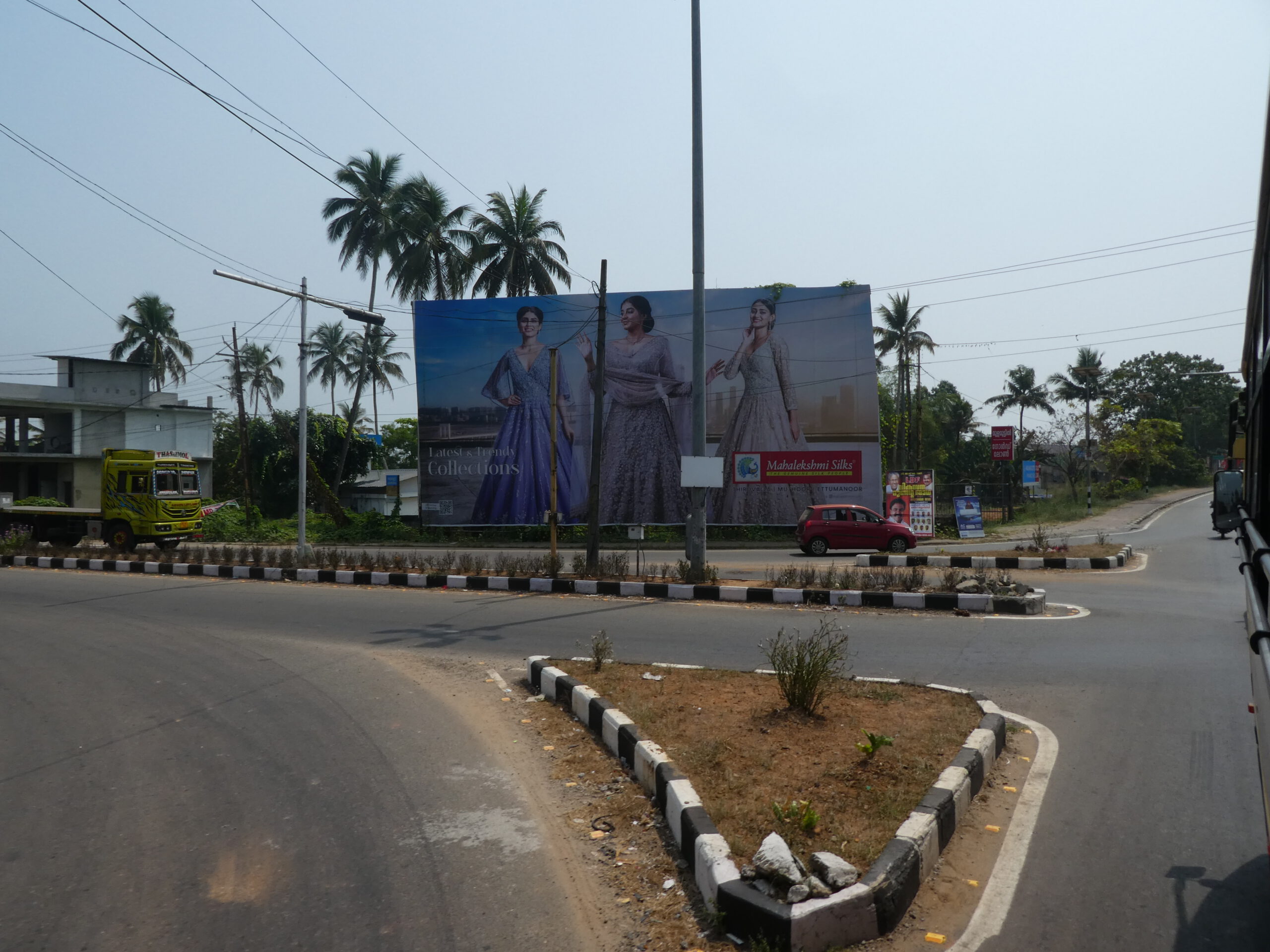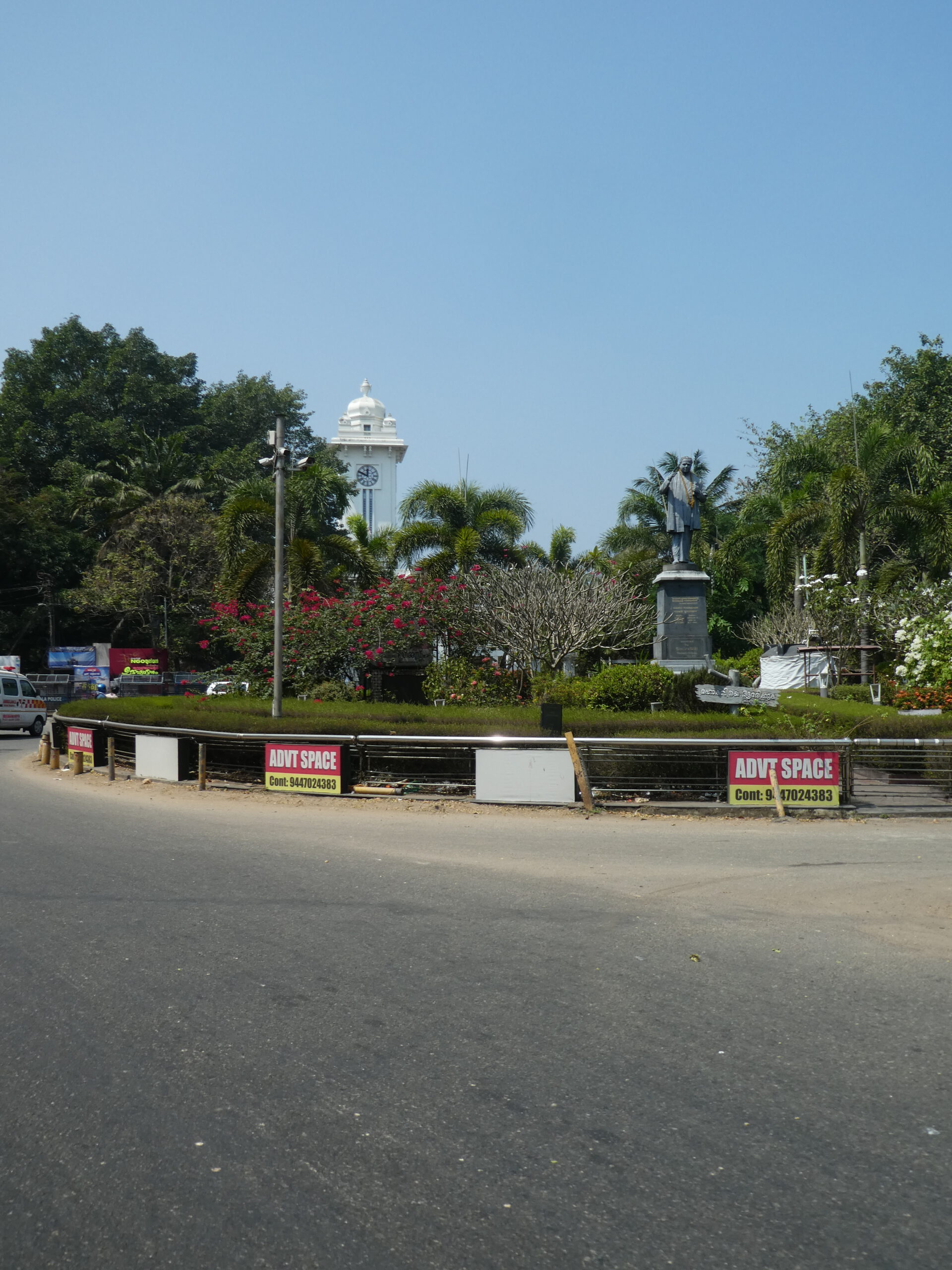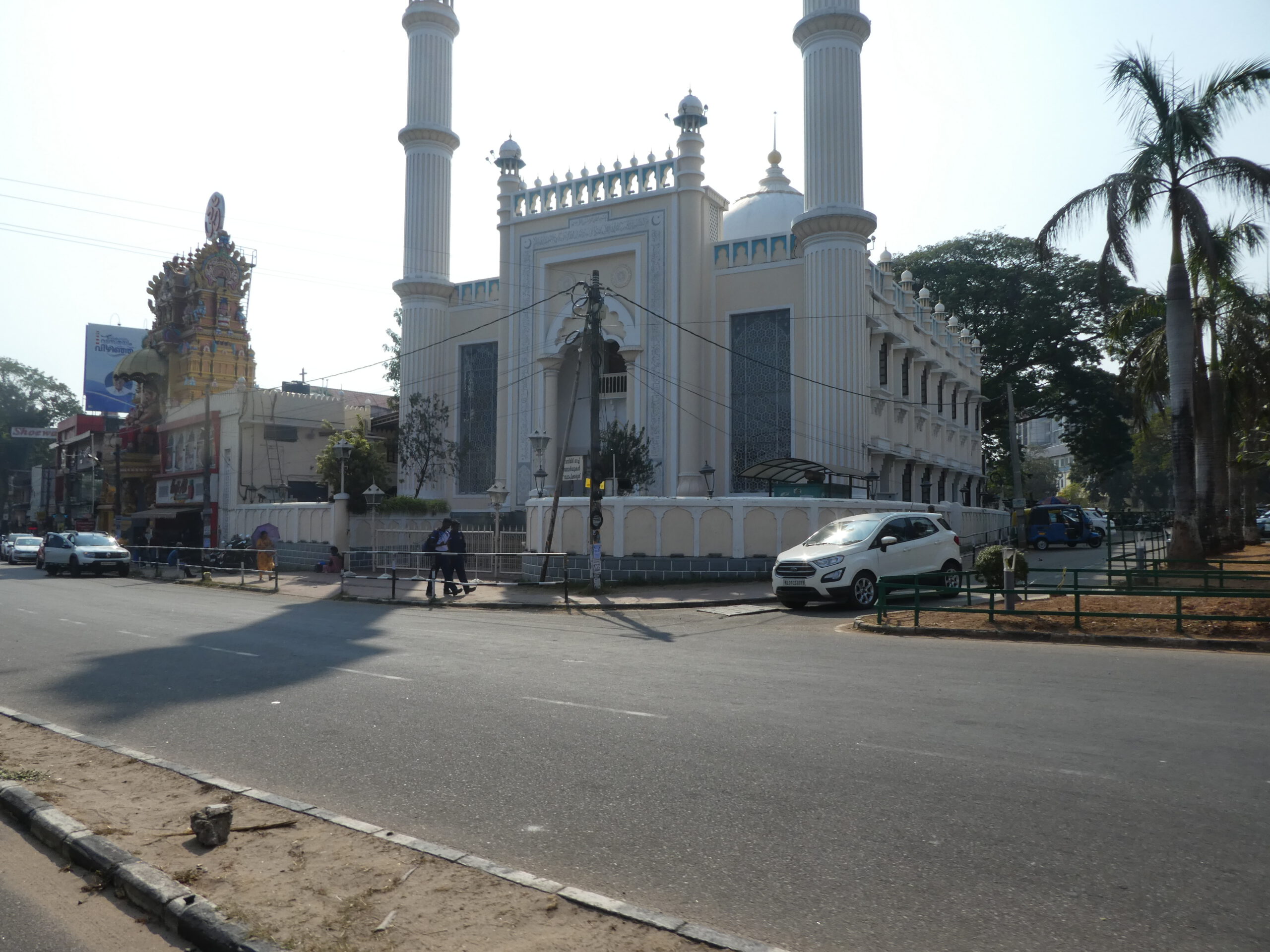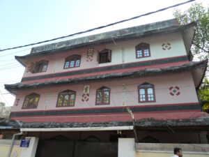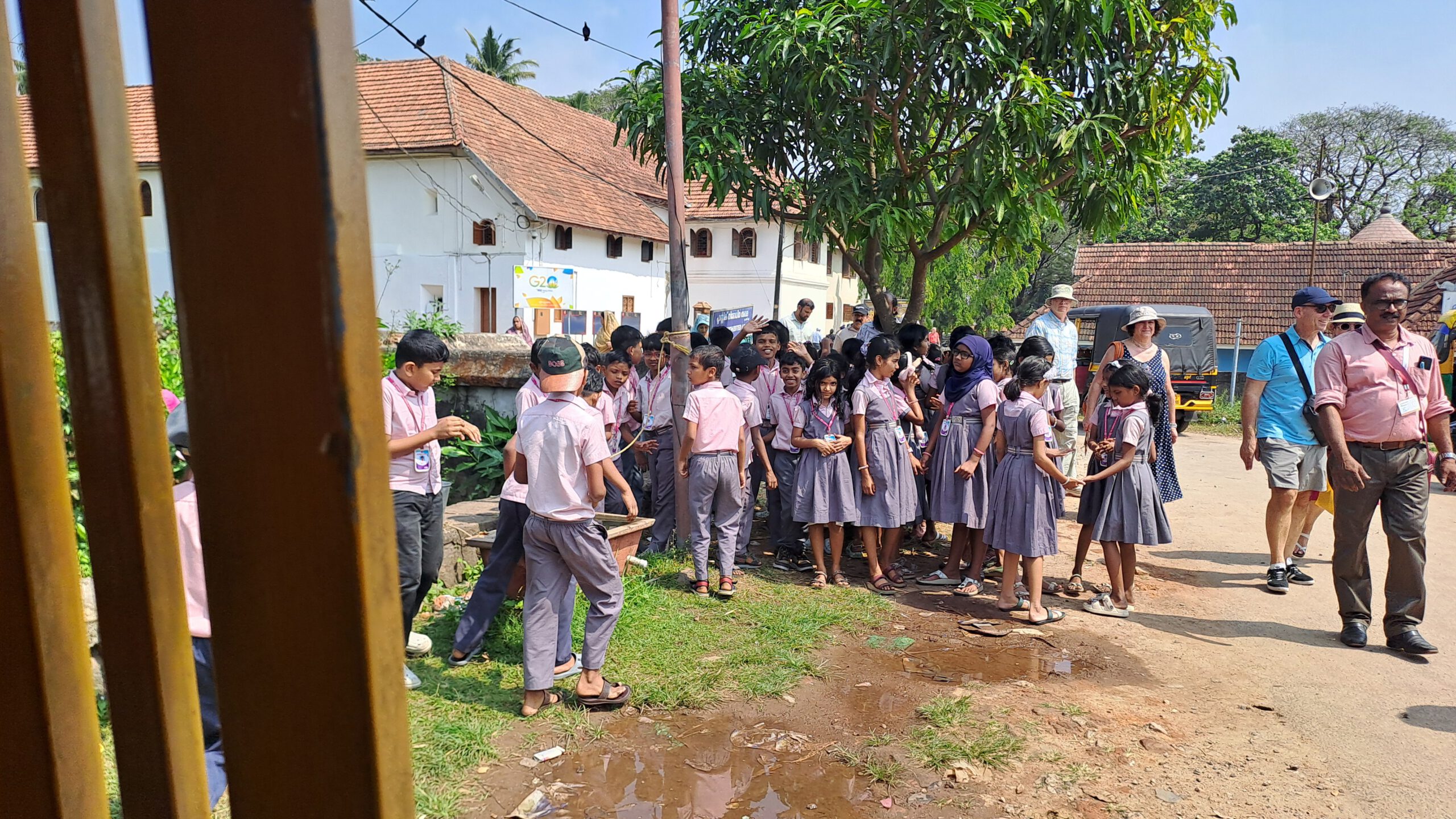 Wir staunen über die vielen Kirchen, die wir während der knapp einstündigen Fahrt sehen, Der Süden Keralas ist stark christlich geprägt, doch auch der Hinduismus hat seinen Platz, das ist an Dekorationen an und über den Straßen schnell zu erkennen. Es vergeht kaum ein Tag, an dem wir nicht durch laute Musik auf irgendein religiöses Fest hingewiesen werden.