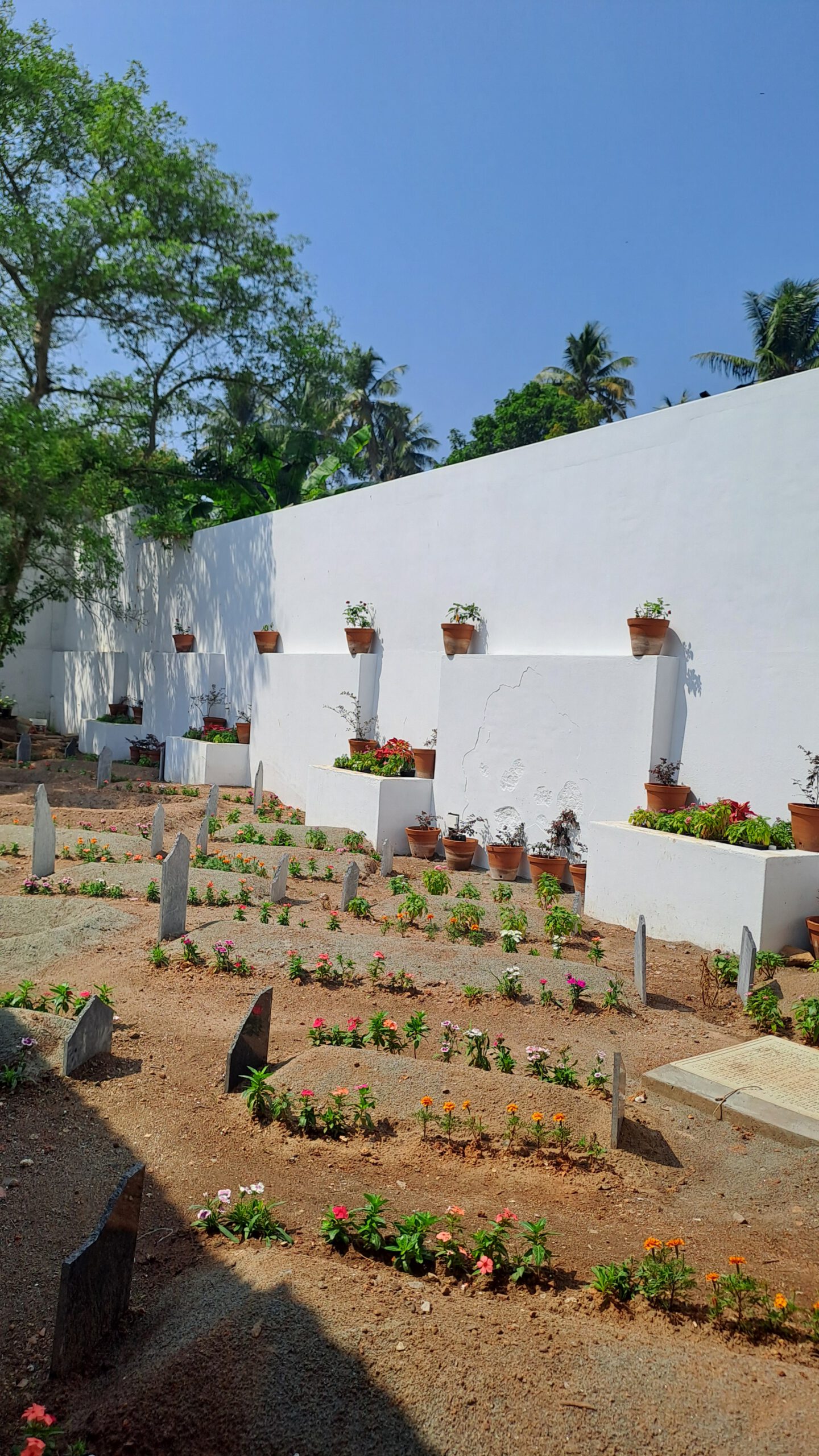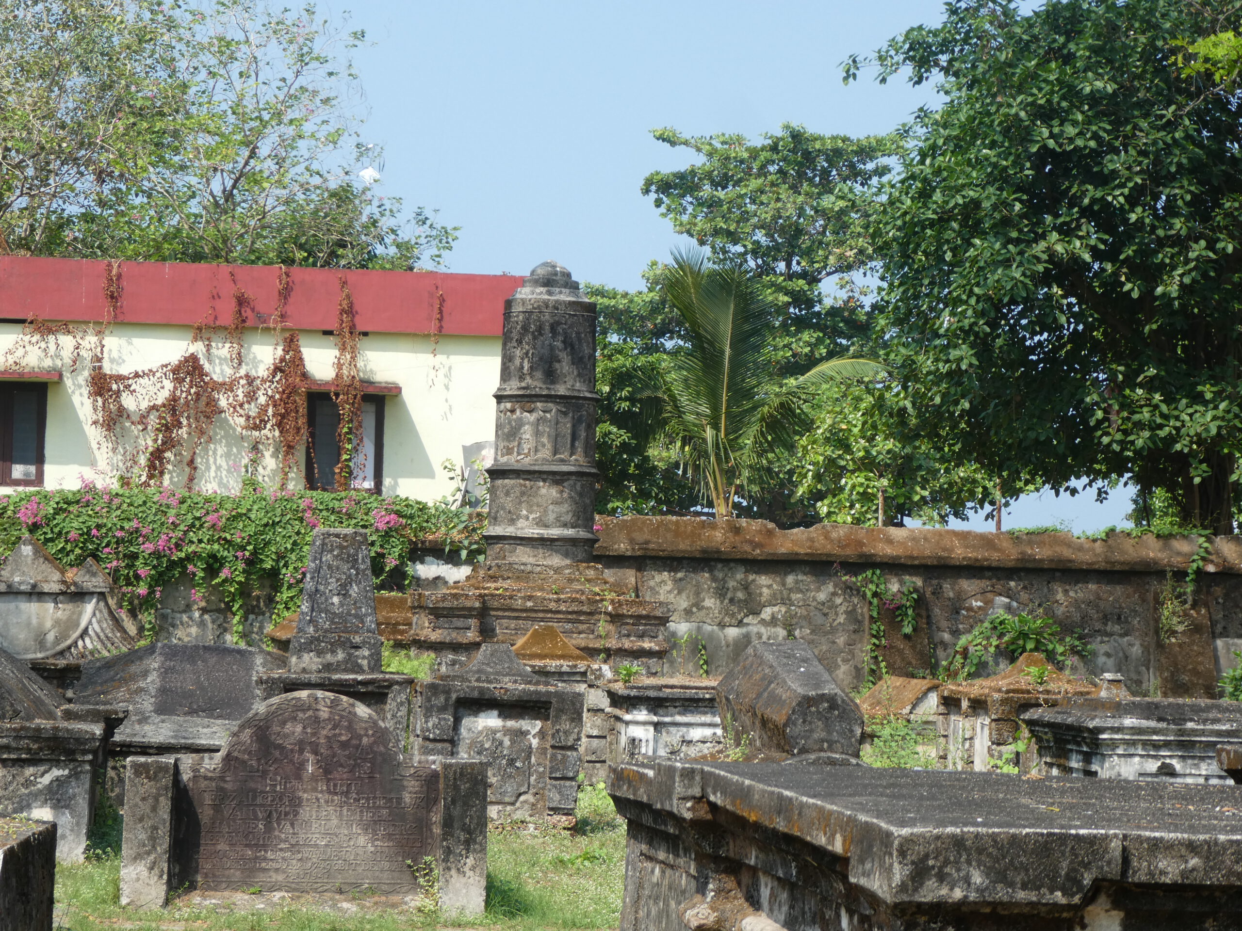 Der niederländische Friedhof zeigt noch viele verwitterte Grabsteine, aus der Besatzungszeit 17. – 18. Jahrhundert. Betreten kann man ihn nicht, das Tor ist verschlossen.