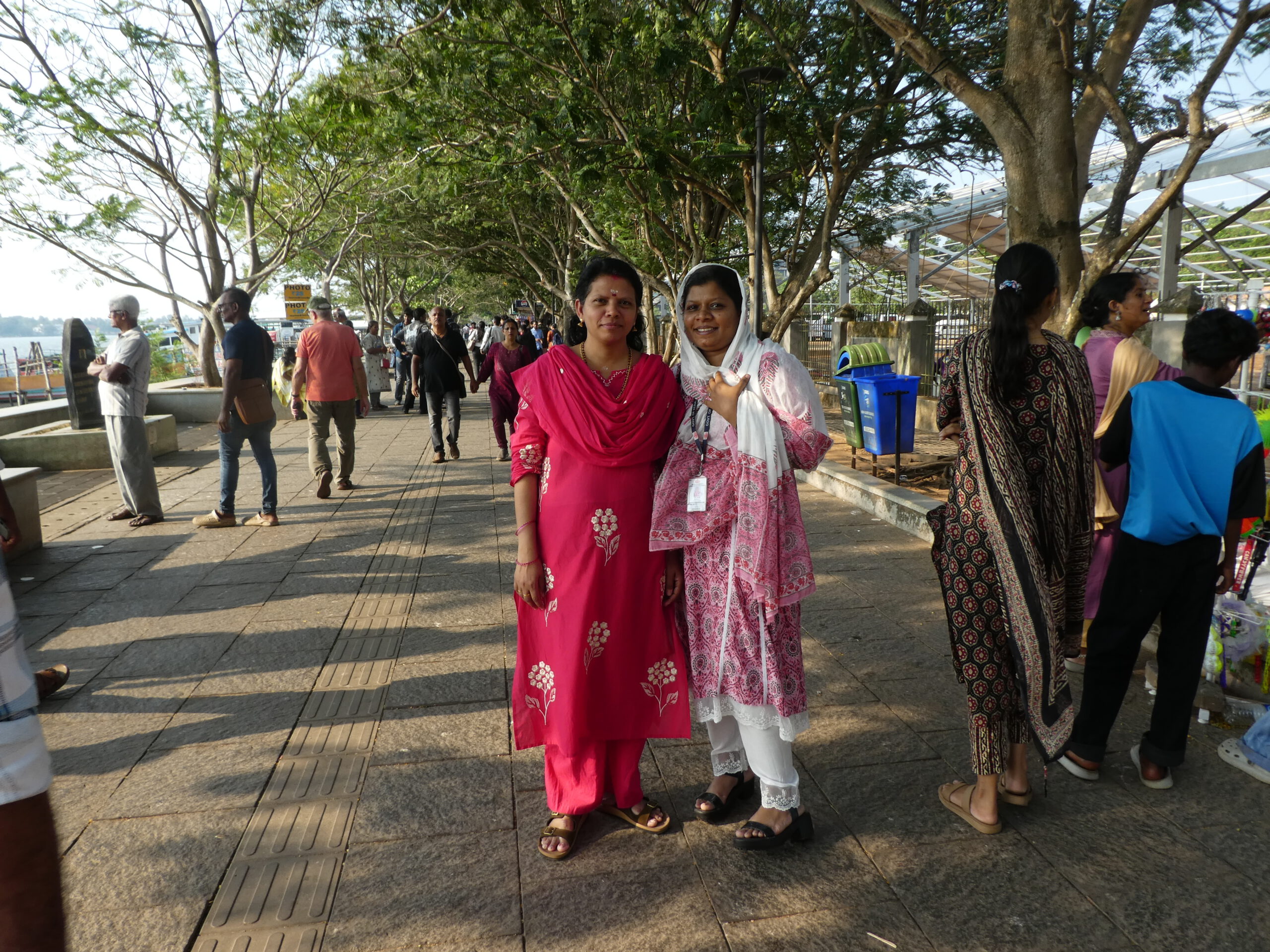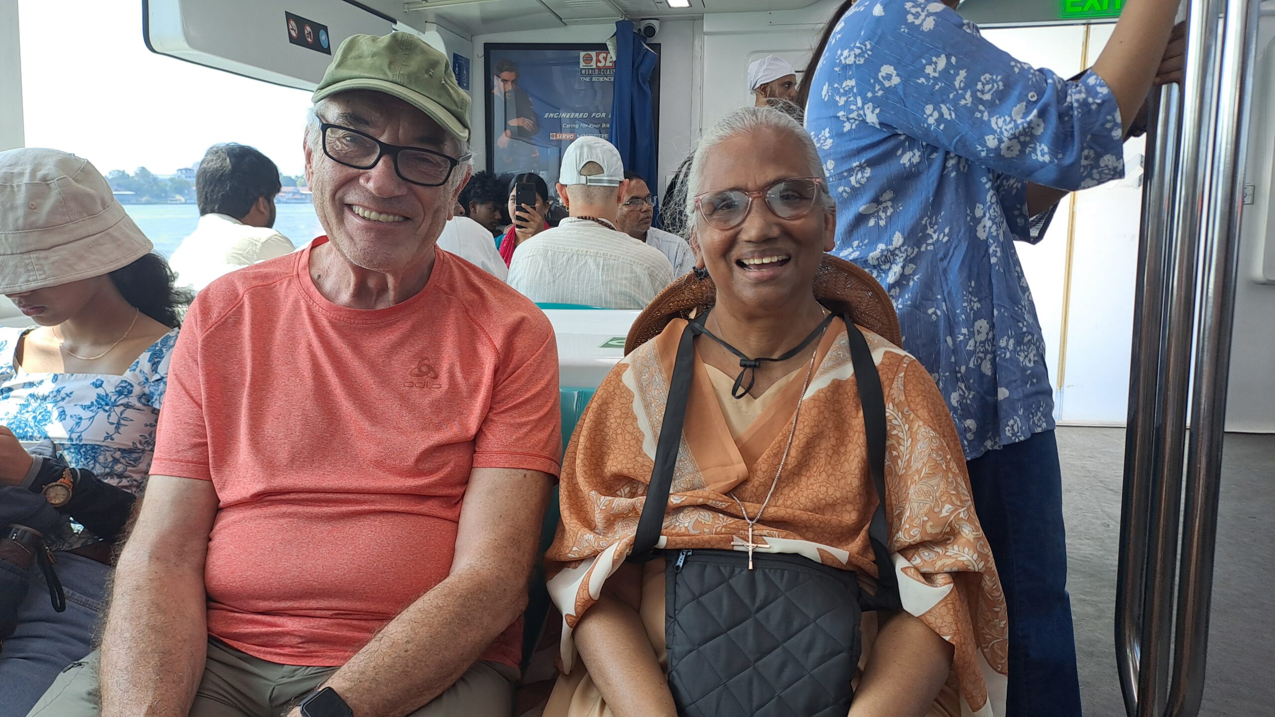 Die Kamera lässt sich nicht wieder aufladen, wir fragen nach einem Fachgeschäft und müssen dafür nach Ernakulam. Mit der Water Metro fährt man für 0,50 € mit dem Boot in 20 Minuten zum Festland. Mit uns steigt eine Gruppe Nonnen ein, wir kommen mit zweien ins Gespräch. Sie sind vom Heiliges Kreuz Orden, und eine erzählt stolz, dass sie schon einmal in der Niederlassung Altötting war.