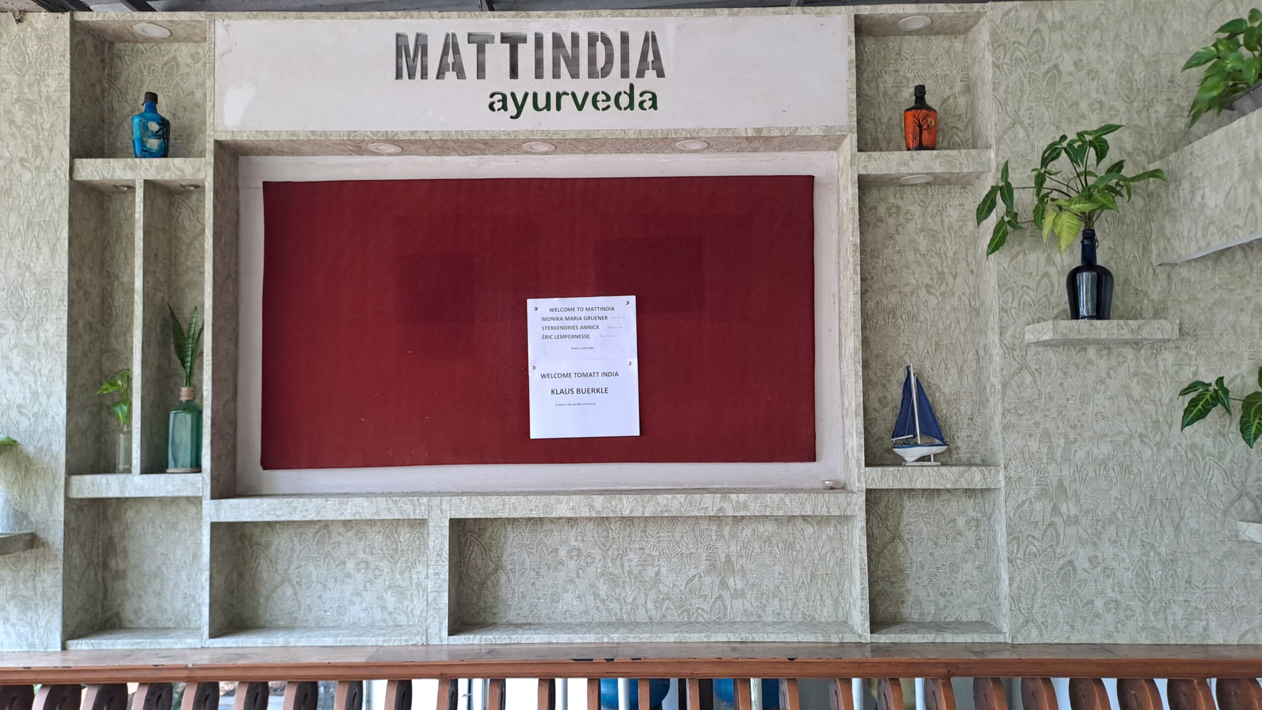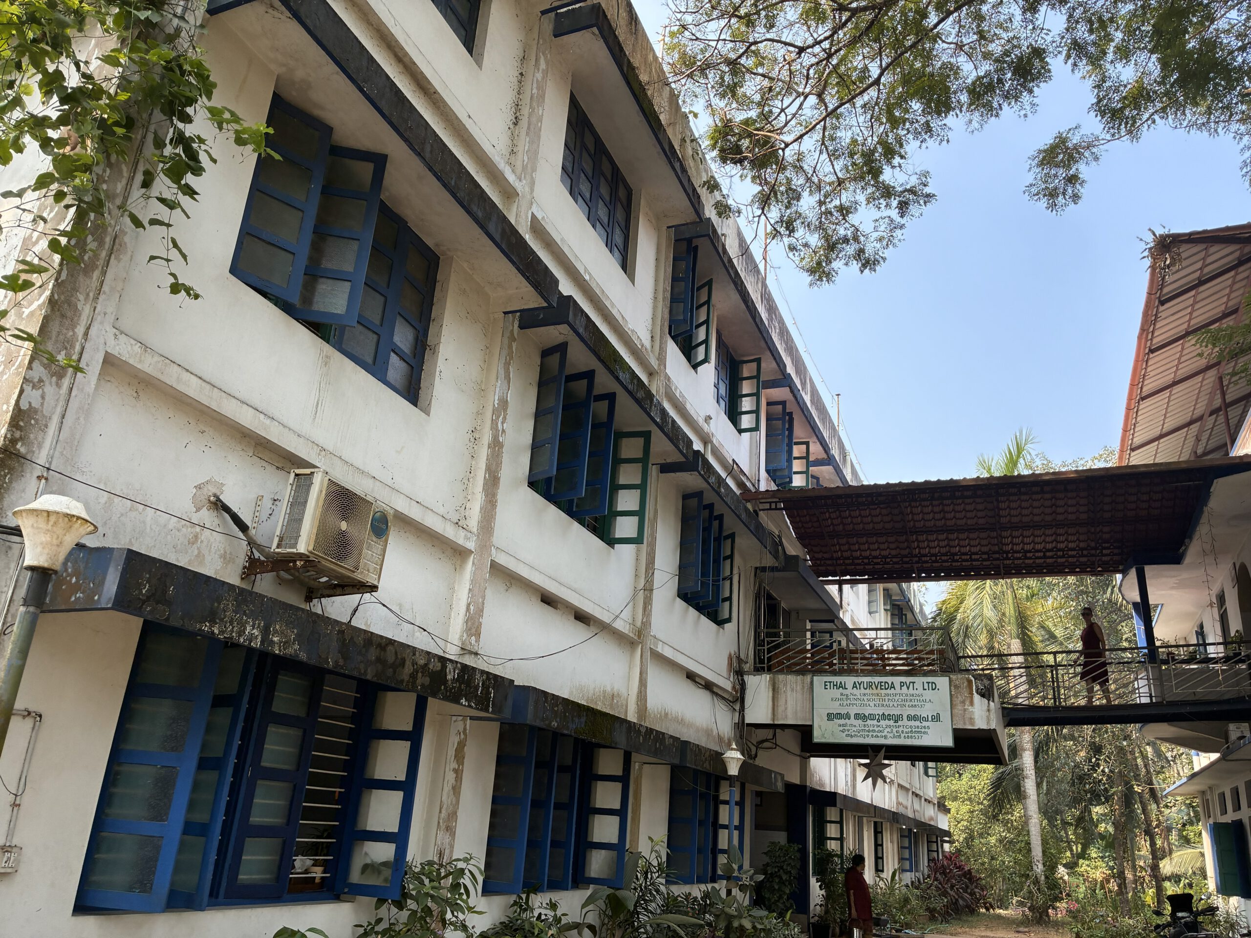 Schon Wochen vor unserer Abreise spukt mir ein Wort im Kopf herum: AYURVEDA. Noch zuhause recherchiere ich zu der mehrere 1000 Jahre alten „Wissenschaft vom Leben“ und lese, dass Menschen mit Arthrose durchaus Schmerzlinderung erfahren. In Fort Kochi gehen wir in eine Ayurveda-Sprechstunde und erhalten ein Angebot für eine ambulante Behandlung; wir sind unentschlossen und sprechen mit unserem Gastgeber über das Thema. Er empfiehlt uns eine Klinik, gut 20 km von Fort Kochi entfernt, kompetent und preiswert. Klaus nimmt schriftlich Kontakt auf und wir bekommen die Zusage, dass wir direkt im Anschluss an unseren Aufenthalt in Fort Kochi dort unterkommen können.