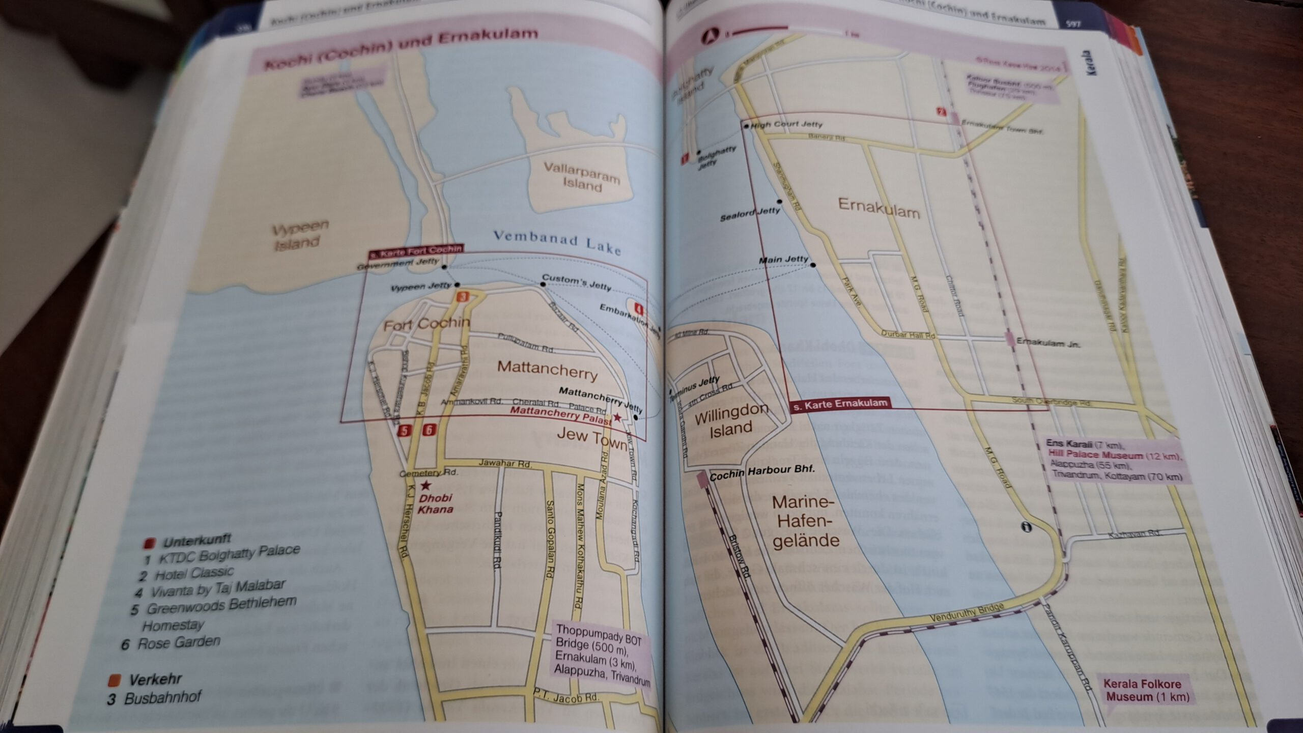 Die Koffer kommen auf den Vordersitz, weil sich im Kofferraum ein großer Gastank befindet, und dann verlassen wir das gepflegte Flughafenareal durch eine Schranke und landen im quirligen Großstadtverkehr mit aller Art von Fahrzeugen. Im Stadtbild wechseln sich modernste Hochhäuser mit einstöckigen Shops, Werkstätten und Lokalen ab. Wir sind zwar keine Neulinge in Asien, aber hier ist alles nochmal bunter, chaotischer und verrückter. Man weiß überhaupt nicht, wohin man schauen soll. Die Stadt Kochi hat ca. 700.000 Einwohner, aber die Metropolregion 3,5 Millionen. Die Stadtteile gehen ineinander über und liegen zum Teil auf Inseln und Halbinseln.