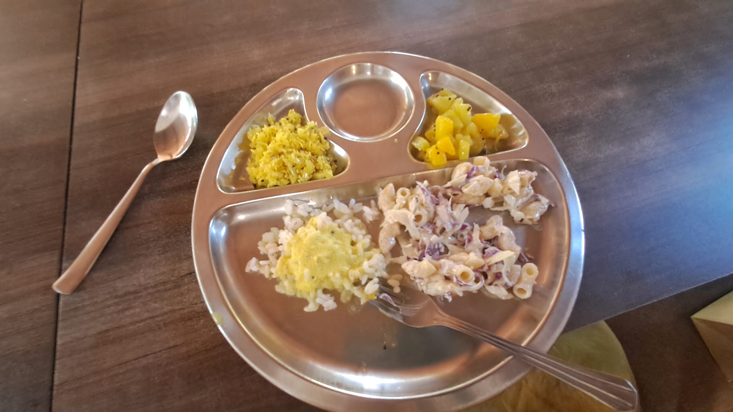 Das Essen in diesem Homestay ist köstlich. Zum Frühstück gibt es so viele verschiedene Sachen, es ist nicht zu schaffen. Am ersten Morgen haben wir Puttu bekommen, das ist geschrotetes Reismehl vermischt mit Kokosraspeln und in zylindrischen Formen gedämpft. Dazu gibt es ein Kichererbsen-Curry. Es folgt Toast, der immer leicht süß ist und im Geschmack an Brioche erinnert, mit fluffigem Rührei. Und dann kommt noch ein üppiger Obstteller mit reifen Ananas, Wassermelone, Guave, Trauben oder Papaya.