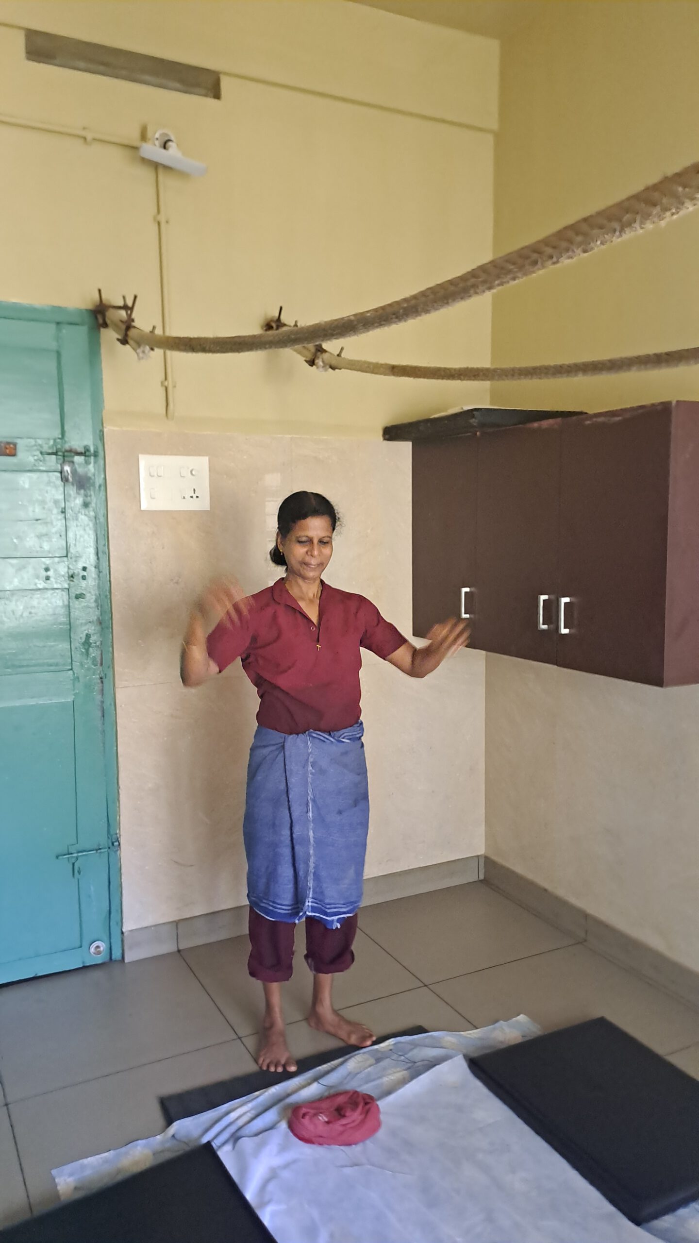 Ich liege nackt auf einem Holztisch, werde mit Öl begossen und eine ¾ Stunde vierhändig sanft massiert, danach in einem anderen Raum von zwei Therapeutinnen mit heißen Beuteln genauso lange am ganzen Körper gestempelt. Die pampelmusengroßen Beutel sind hier mit Linsen, Kräutern und Steinsalz gefüllt und werden immer wieder in heißem Kräutersud getränkt. Jetzt verstehe ich auch, warum beim Mittagessen fast alle Frauen die gleichen Kleider getragen haben. Nach der Massage ist der Körper ölig und würde die eigene Kleidung verschmutzen. Alle 3 Tage werden die Kleider eingesammelt und gewaschen, man kann aber auch zwischendurch nach einem neuen fragen.