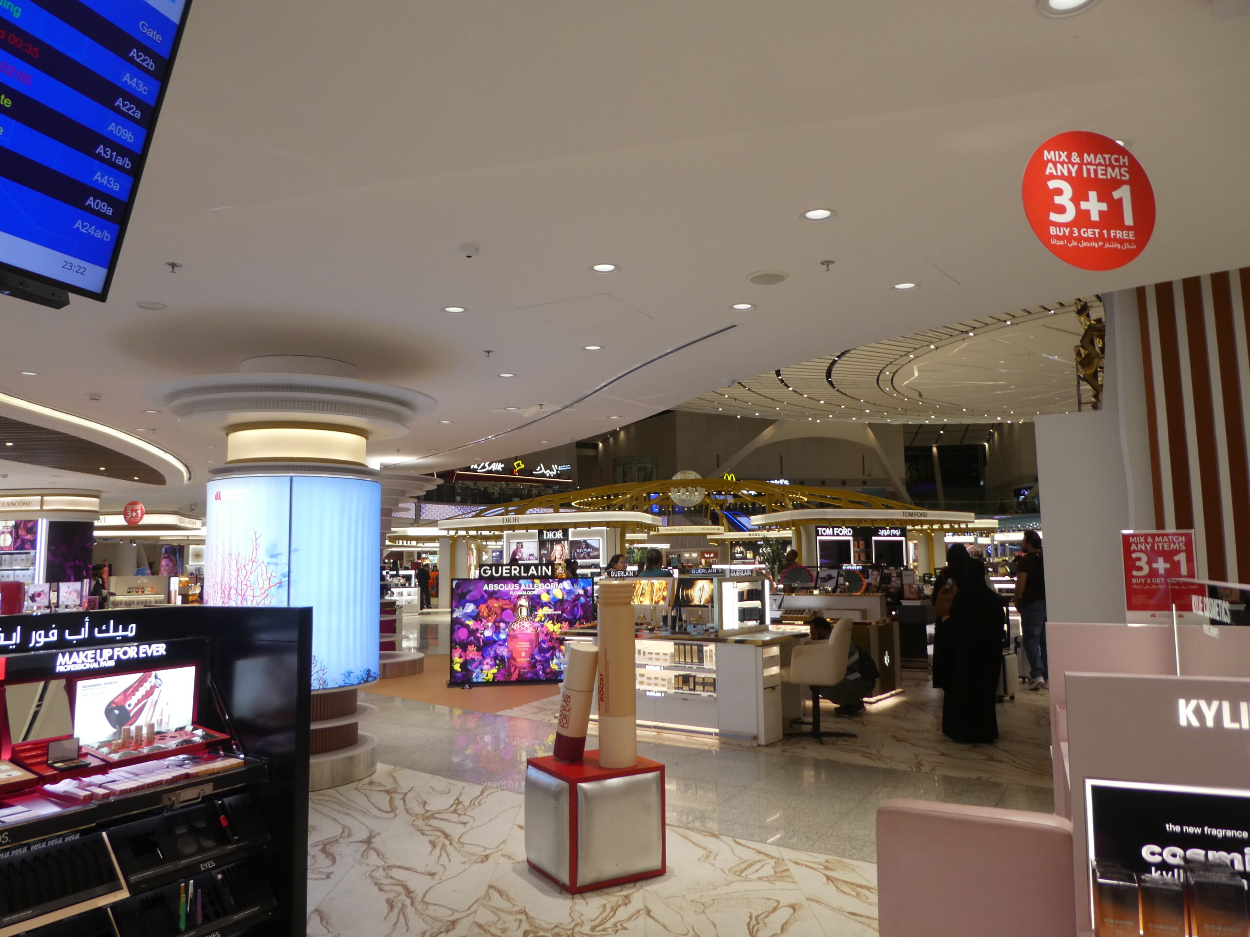 Alles ist großzügig, hell und um 23.00 Uhr Ortszeit sind Massen von Menschen unterwegs. Alle Geschäfte und Restaurants sind geöffnet, Servicepersonal ist unentwegt mit Reinigungsarbeiten beschäftigt, der Betrieb wird nicht weniger, als wir zu unserm Weiterflug um 2.00 Uhr über mehrere Laufbänder zum Gate gelangen.