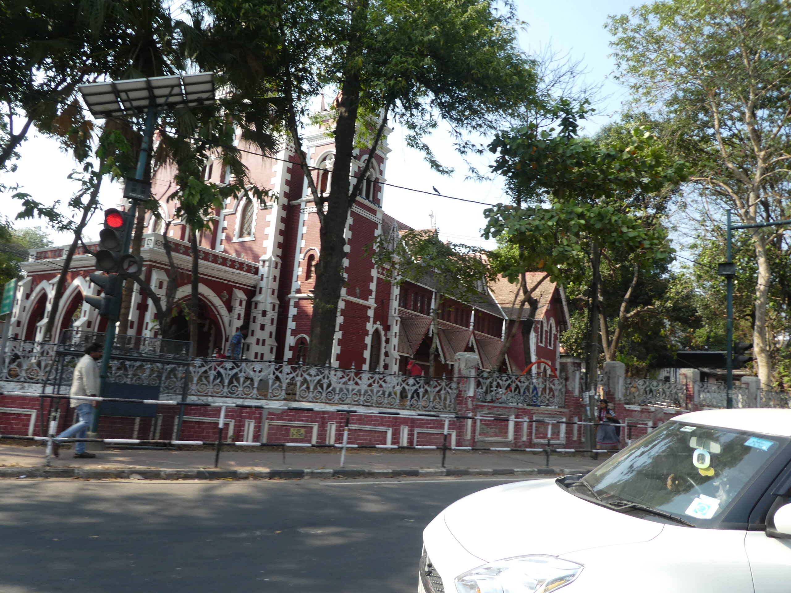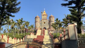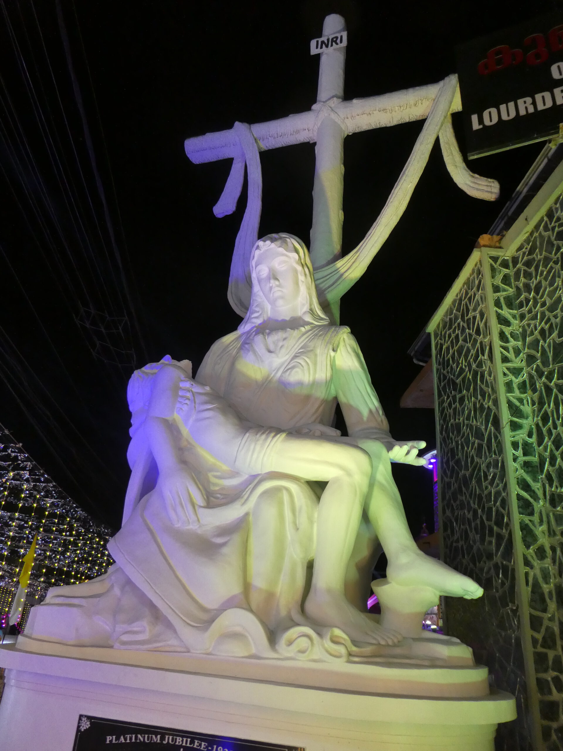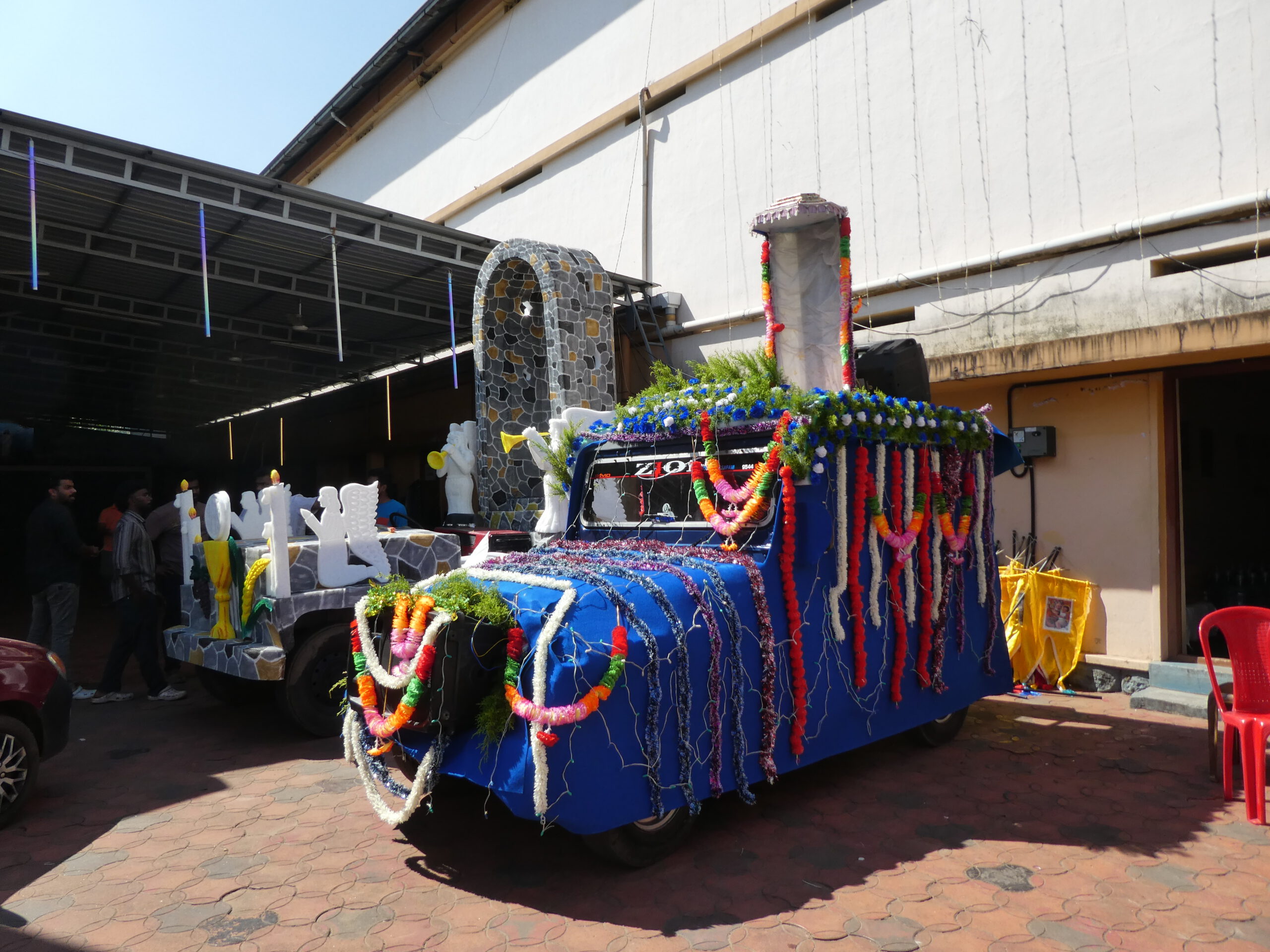 In der Umgebung der Klinik befindet sich kein einziges Uber-Fahrzeug, während wir noch beratschlagen, hält eine Rikscha (Tuk Tuk) vor dem Eingang. Das Fahrzeug hat sogar einen Kofferraum, in dem unser Gepäck Platz findet. Tuckernd schlängelt sich der Fahrer durch den Verkehr und wir bedauern nur, dass auf dem Tischchen vor unserer Bank jetzt kein nettes Getränk steht. Bisher sind wir nirgends durch unbewohnte Gegenden gekommen, aber die 1,4 Mrd. Menschen in Indien brauchen schließlich Platz. Auf der linken Straßenseite großes Remmi-Demmi, hier sehen wir mal ein christliches Fest. Vor der großen Kirche sind dicht an dicht Buden aufgebaut, wo man all das kaufen kann, was es bei uns auch auf einer Kirmes gibt, nur dem hiesigen Geschmack angepasst.