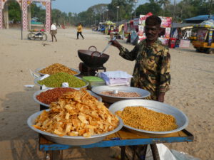 Auf unseren bisherigen Reisen waren wir aufgrund unseres Alters fast Exoten. Die meisten Reisenden, die wir getroffen haben, waren junge Backpacker. In Indien ist das ganz anders, hier gehen wir in der grauen Masse der reisenden Rentner – hauptsächlich Briten – förmlich unter. Aber was für interessante Menschen sind hier unterwegs: Ein Ehepaar, das zum 18. Mal in Indien ist und insgesamt auf über 5 Jahre Reisezeit kommt; mehrere Paare, die in einem Hilfsprojekt für Kinder ehrenamtlich tätig sind; ein Niederländer, der indische Flöte spielen lernt; eine Deutsche, die seit 5 Jahren ohne Wohnsitz in der Welt unterwegs ist …