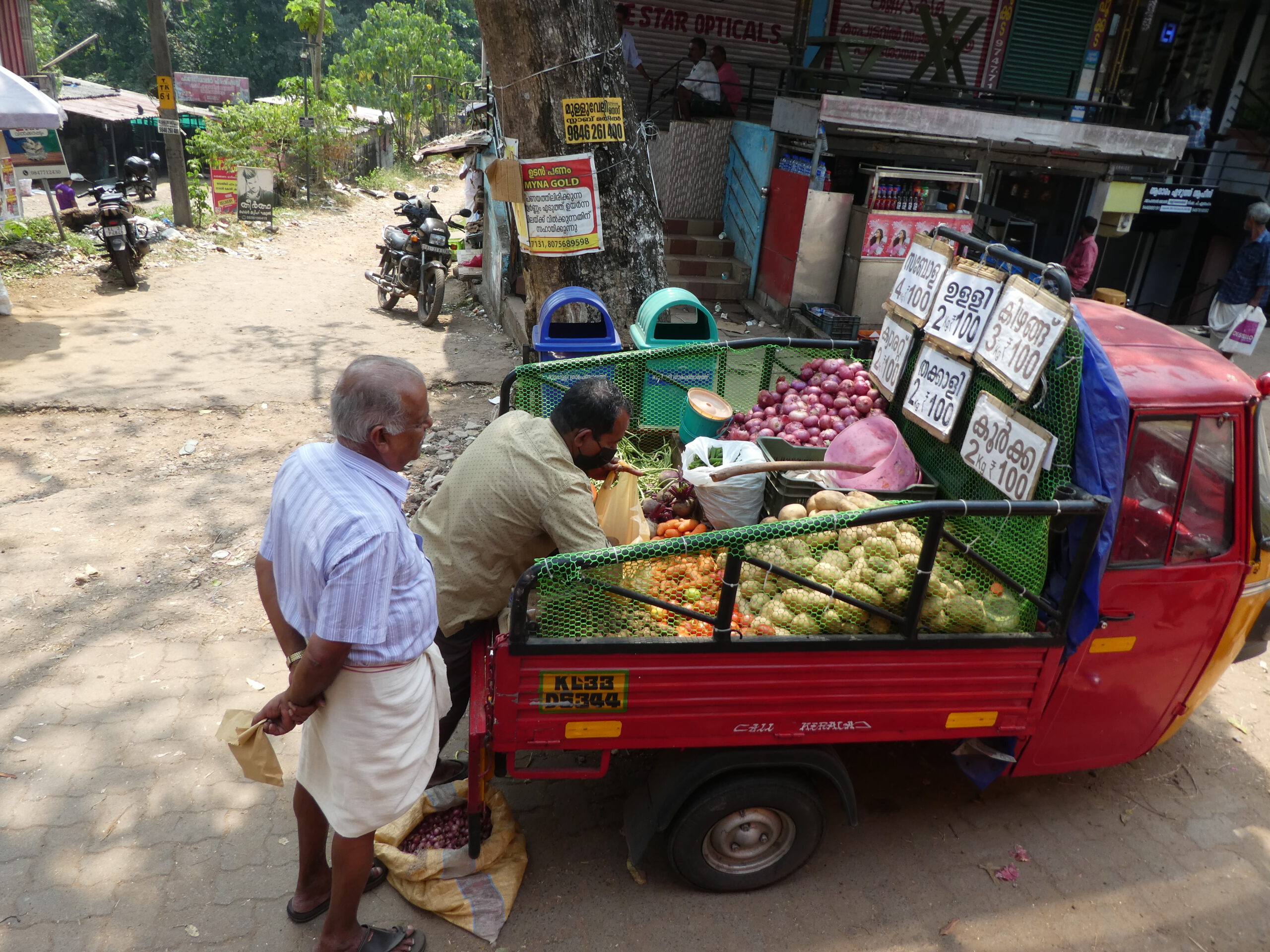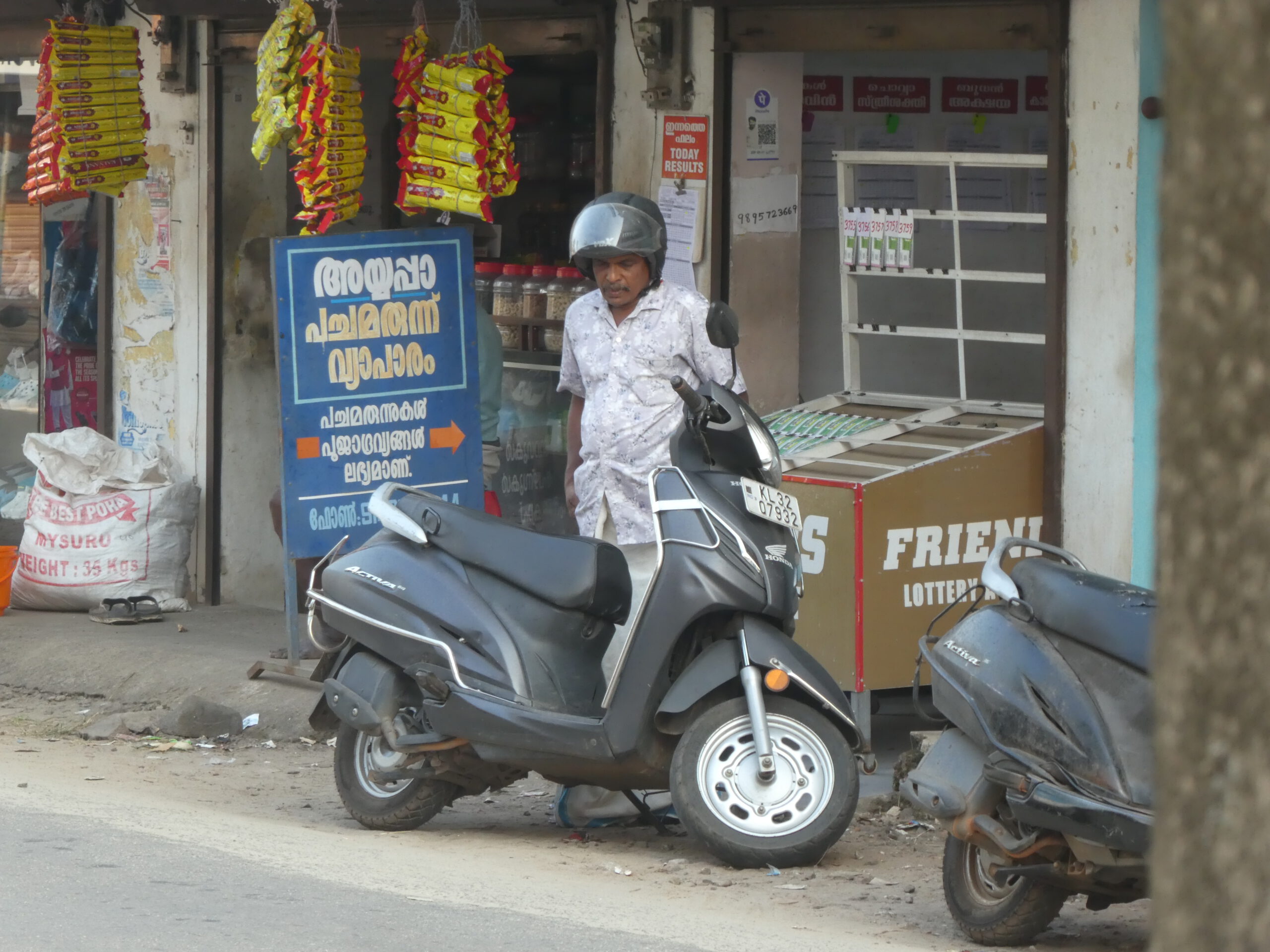Unsere SIM Karten, die wir in Kumily um 30 Tage verlängert haben, funktionieren nicht mehr. Airtel schickt uns ständig Aufforderungen, die Verlängerung mit unserer AADHAAR-Nummer zu bestätigen, doch die haben wir nicht, es ist eine Verschlüsselung verschiedener Daten, die die Einwohner Indiens brauchen, deshalb sind unsere indischen Telefonnummern abgeschaltet worden. Der erste Versuch in Varkala schlägt fehl, wir müssen am Montag wiederkommen. Wir zahlen noch einmal jeder 1,35 €, und mit vielen Tastendrucken und Anrufen bekommt die junge Frau in der Niederlassung, die wir wie die meisten Geschäften ohne Schuhe betreten, das hin. Bei der Gelegenheit fahren wir gleich noch in einen Computer-Shop. Hatte ich schon erwähnt, dass meine Tastatur kaputt ist? Aus drei vorhandenen wählen wir die teuerste (13,50 €) aus und hoffen, dass sich diese Investition lohnt.