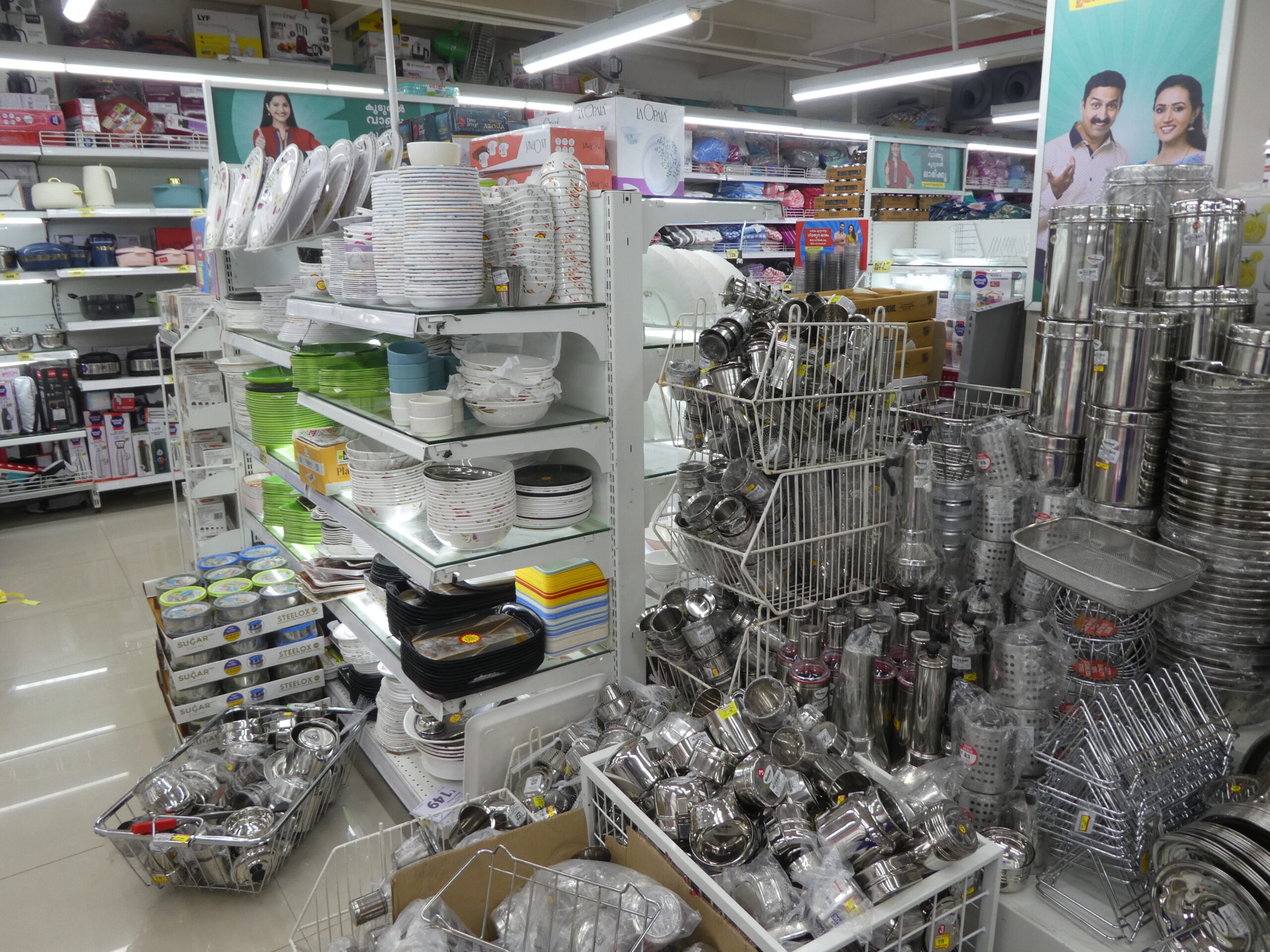 Wir fahren noch einmal mit der Water Metro nach Ernakulam in die große Lulu Mall. Außer weltbekannten Luxusmarken sind hier Geschäfte mit traditioneller indischer aber auch westlicher Kleidung zu finden. Auch hier gibt es in der obersten Etage einen Indoor-Vergnügungspark und sogar eine Eisbahn. Zurück nehmen wir die S-Bahn, zu der es von der Mall einen Übergang gibt. Von oben haben wir einen tollen Überblick über die Stadt.