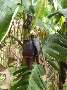Am nächsten Tag bekommen wir zum Frühstück eine Spezialität serviert. In einem kunstvoll gefalteten Bananenblatt ist eine Art Kokospudding gegart worden, darüber werden die Scheiben einer kleinen Banane gelegt und das Ganze mit Honig von Wildbienen beträufelt.