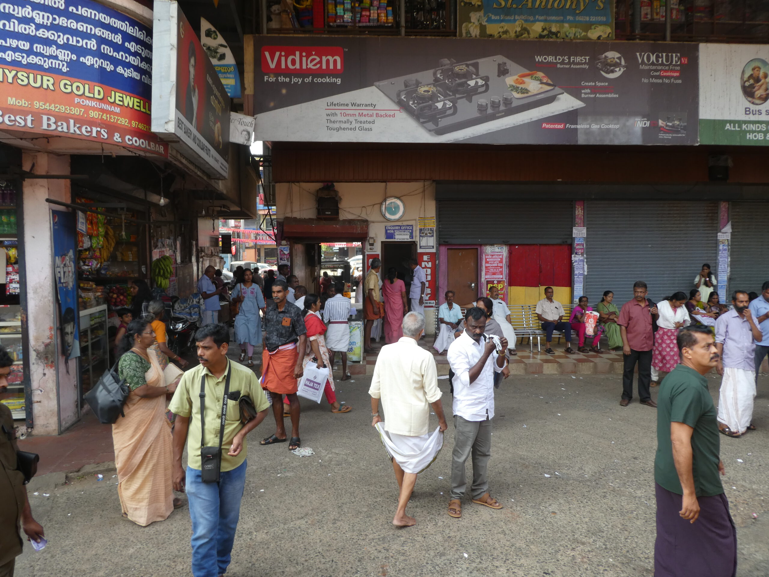 Angekommen in Ernakulam fahren wir mit einer Rikscha zum Fotogeschäft, gleich mehrere Mitarbeiter bemühen sich um uns, rufen extra ihren Techniker an, der nach 10 Minuten da ist, und eine Ladevorrichtung für die Batterie konstruiert. Nach über einer Stunde ist sie so weit geladen, dass ich wieder Bilder machen kann. Da dieser Typ Kamera nie in Indien verkauft worden ist, gibt es auch keine Ersatzbatterien.