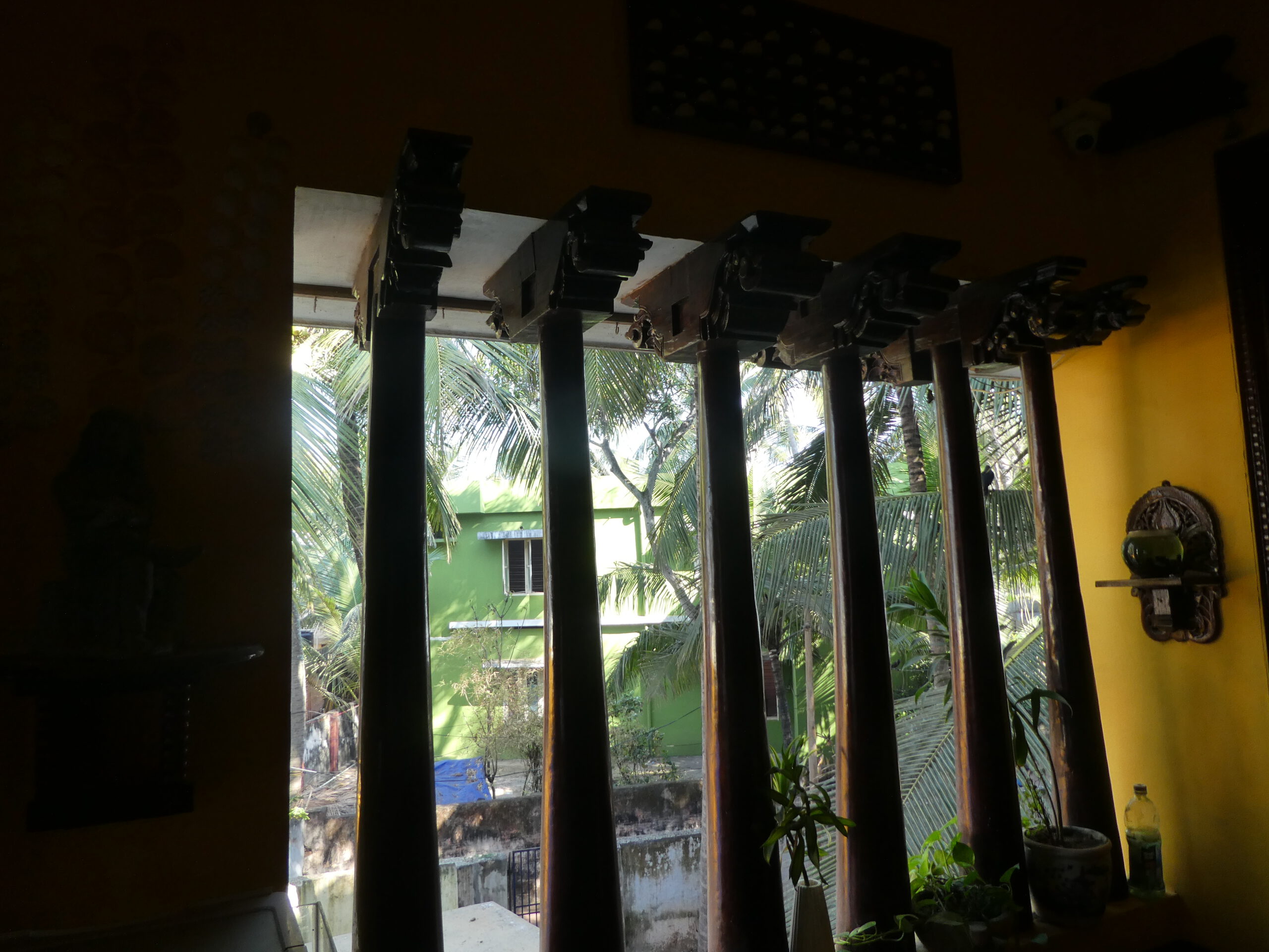 In Kochi findet gerade die Bienale statt, Indiens größte internationale Kunstausstellung. Alle zwei Jahre wird zeitgenössische Kunst im Bereich Malerei, Skulptur und Installationen in verschiedenen Gebäuden im alten Stadtteil ausgestellt. Gegenüber der Kirche können wir in einem ehemaligen Country Club einen winzigen Teil der Ausstellung besichtigen.