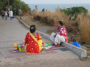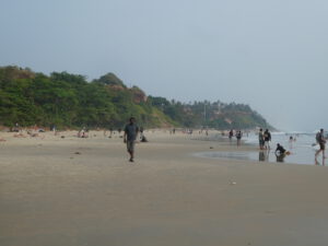Am Wochenende ist es am Strand besonders voll , dann muss die Zufahrt zum großen Parkplatz schon an der Hauptstraße gesperrt werden. Nur Rikschas, die einen festen Standplatz haben, dürfen die Besucher dann noch hin- und herfahren. Dieser Strand an der Malabarküste besonders beliebt, weil er