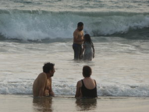 Trotzdem gehen wir einen Tag später wieder zum Strand, das fast 30 Grad warme Wasser ist zu verlockend. Einfach rein laufen, ohne sich abzukühlen und hinterher am Strand sitzen und Menschen beobachten. Sehr selten sieht man die Einheimischen in Badekleidung, lediglich sehr junge Menschen scheinen nach und nach unsere Gewohnheiten diesbezüglich zu übernehmen.
