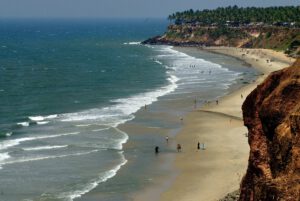 Mit einiger Verspätung erreichen wir Varkala, einen wichtigen hinduistischen Pilgerort mit ca. 40.000 Einwohnern. Der gut 2000 Jahre alte Janardanaswamy Tempel ist dem Gott Vishnu gewidmet und wird jedes Jahr von Tausenden Gläubigen besucht.