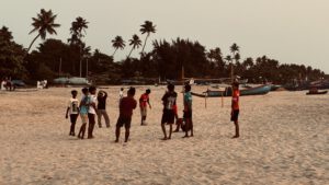 Auf einer engen Straße erreichen wir den Zugang zu unserer Unterkunft, gut 50 Meter müssen wir noch durch tiefen Sand laufen. Doch Habib, unser Host, erwartet uns schon und kümmert sich um die Koffer. Vor unserem Zimmer im ersten Stock liegt ein großer Balkon, von dem wir Meeresblick haben. Da hält es uns nicht lange im Zimmer. Kurze Zeit später sind wir am Strand, der hauptsächlich von Fischern genutzt wird. Jetzt am Nachmittag sind alle Boote an Land. Trotz des Seegangs laufe ich in das herrlich warme Wasser und werde von der nächsten Welle in den Schleudergang genommen. Mit Sand paniert und triefnassen Haaren rette ich mich mit Klaus Hilfe ans Ufer. Vier Jugendliche amüsieren sich köstlich.