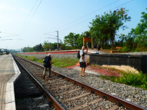 Mit etwas Verspätung – über die deutsche Bahnkunden heutzutage lächeln würden – kommt unser Zug an. Wir haben zwei Bänke für uns allein und machen es uns an den Fenstern ohne Scheiben bequem. Ortschaften, Reisfelder und Wiesen ziehen an uns vorbei. Jede Kuh auf der Wiese hat ihren eigenen Reiher. Gibt es nicht genug Kühe, wird sie von zwei Reihern begleitet. Gibt es nicht genug Reiher, übernehmen Krähen den Job des Ungeziefer-Vernichters.