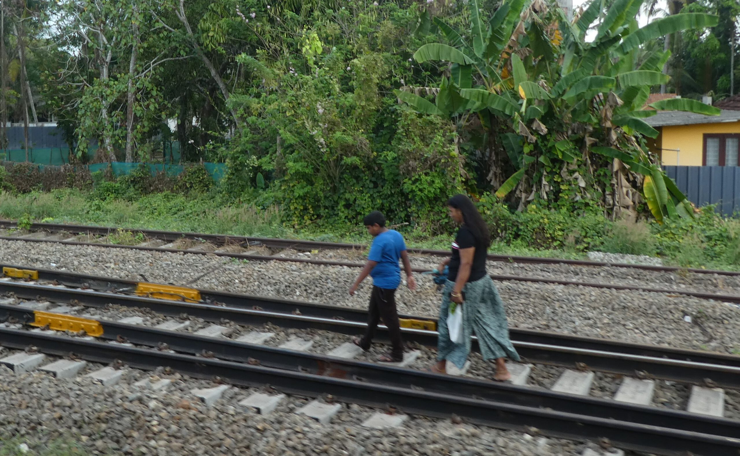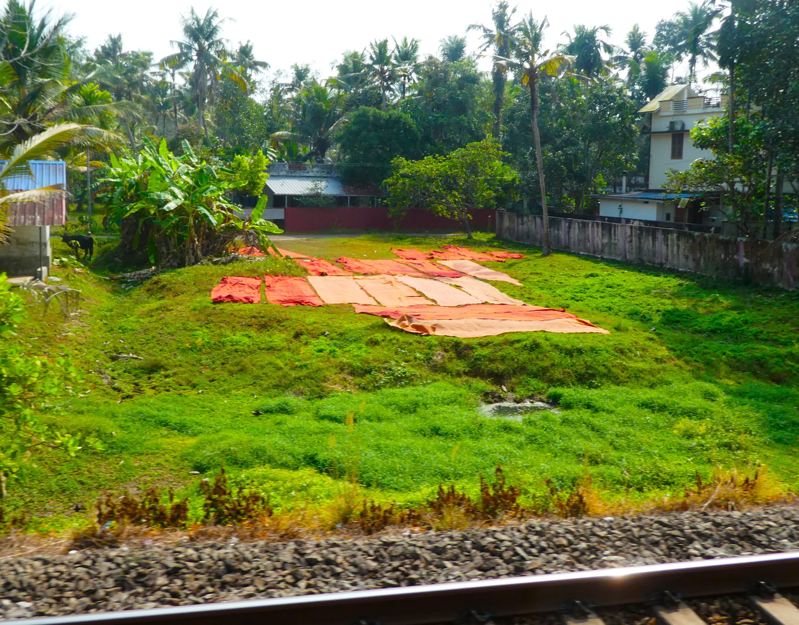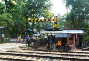 Das Schienennetz ist in Indien gut ausgebaut und in sehr gutem Zustand. Während unseres Aufenthaltes in Munroe Island haben wir gestaunt, wie viele Züge täglich vorbeigekommen sind. Dreißig Waggons hängen fast immer an der Lok und der Güterzug der gerade durchfährt hat fünfzig Tankwagen.