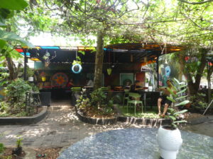 Das gebuchte Hotel ist wesentlich größer als gedacht. Wir haben es ausgesucht, weil es so zentral gelegen ist. Die Anlage ist an einem Hang gebaut und hat verschiedene Bungalows und ein Pool. Zum Haupthaus müssen wir etliche Treppen steigen, dann gibt es zum Glück einen Aufzug, der uns in die zweite Etage bringt. In dem schönen großen Zimmer warnt ein Schild davor, die Balkontür geöffnet zu lassen, weil immer wieder Affen auf die Balkone springen. Wir sehen allerdings keinen einzigen, das mag daran liegen, dass gegenüber in einer katholischen Kirche ein dreitägiges Fest gefeiert wird. Es ist alles da, was den Menschen gefällt: Laute Musik, bunte Beleuchtung und ein paar Stände mit allerlei Dingen, die Kinder und Erwachsene erfreuen. Die Kirche ist jedenfalls proppenvoll. Religion ist hier vor allem eins: Fröhlich.