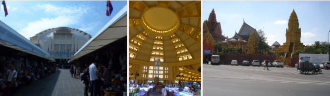 Das Wahrzeichen dieser Stadt steht mitten auf dem Kreisel auf der Hauptstraße – eine Durian (Stinkfrucht). Rund um Kampot gibt es Plantagen, auf denen die Bäume stehen. Nicht zu vergessen, die Pfefferplantagen. Seit dem 13. Jahrhundert wird in Kambodscha Pfeffer angebaut, auch dieses einträgliche Geschäft wurde durch den Krieg zunichte gemacht. Die Menschen wurden verschleppt, die Pflanzen auf den Plantagen gingen ein und erst langsam kommt das Geschäft wieder in Gang. Kampot-Pfeffer ist eine überaus begehrte Sorte, weil sie Aroma und Fruchtigkeit perferkt kombiniert. Hier wird sogar der seltene rote Pfeffer geerntet.