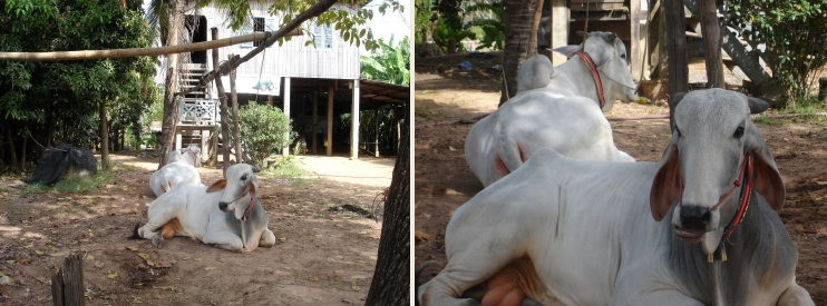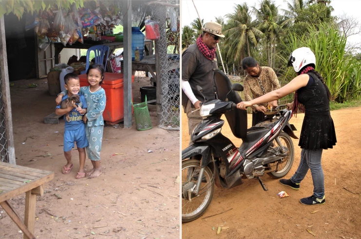 Rico, der französische Besitzer mit seiner kambodschanischen Frau Kunthy und ein Mitarbeiter bringen uns und die Koffer die fünf Kilometer zurück zur Unterkunft. Dort wartet ein kleiner gelb gestrichener Bungalow auf uns.