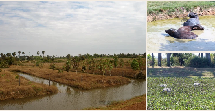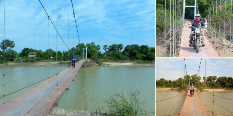 Eine Broschüre fordert die Kampot-Touristen auf, den 10 Kilometer entfernten Zoo zu besuchen, damit vom Eintrittsgeld Futter gekauft werden kann. Da können wir uns nicht verweigern und leihen uns im Hotel Räder und fahren über die alte Brücke auf die andere Seite des Flusses und auf der stark befahrenen staubigen Landstraße Richtung Elefantenberge. Hier leben noch Tiger und Elefanten, aber die Berge selbst sind abgesehen von den Tieren nicht ungefährlich, viele Landminen liegen hier noch in der Erde, vergraben während des Bürgerkrieges von den Roten Khmer.