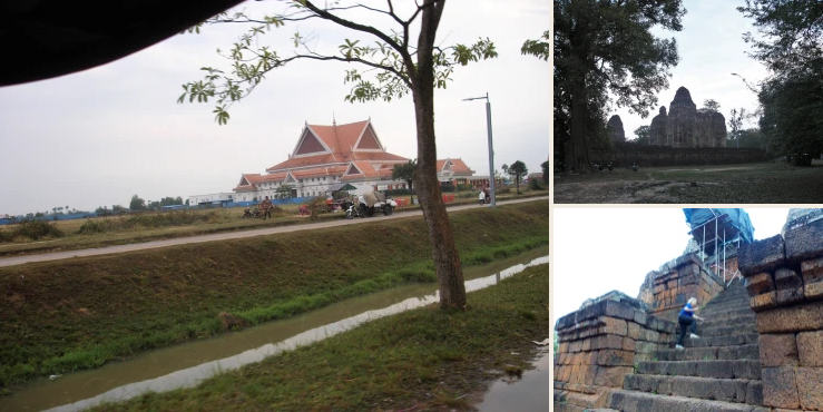 Kurz vor der Grenze dann außer Reisfeldern, große Salinen. In der Grenzstadt Ha Tien endet die Fahrt nach mehr als acht Stunden am Busbahnhof. Doch wie von hier aus weiterkommen? An den Schaltern werden keine Tickets nach Kambodscha angeboten. Ein Mann spricht uns an und heftet sich wie eine Klette an uns. Sobald einer von uns losgeht, um sich umzusehen, folgt er und verschwindet auch nicht, wenn man mit anderen Leuten reden will. Letztendlich trägt er den Sieg davon und bringt uns in einem Kleinbus in die Innenstadt zu einer Reiseagentur. Hier wird die Weiterfahrt nach Kambodscha inklusive Visaformalitäten angeboten. Natürlich zum überhöhten Preis. Der Besitzer erklärt uns glaubhaft, dass die Gebühren von der Regierung gerade erhöht worden seien. Stimmt aber nicht, wie wir dann an der Grenze feststellen. Naja, Bequemlichkeit kostet halt. Wir werden im Minibus bis zur Grenze gebracht, der Mitarbeiter kümmert sich um die Formalitäten, der Grenzübergang klappt problemlos innerhalb von ein paar Minuten und der Bus bringt uns direkt zu unserem Hotel.