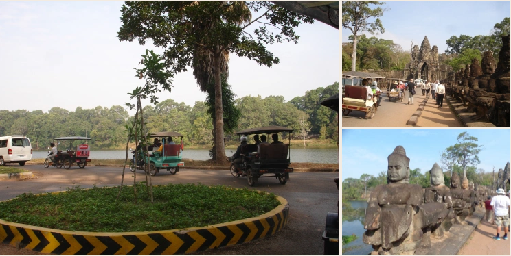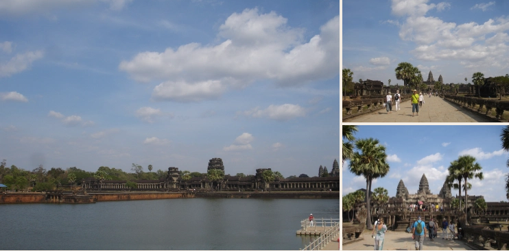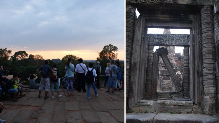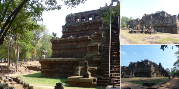 Vom Bayon Tempel führt ein 200 Meter langer Weg zum Baphuon Tempel. Auf einem Platz tummeln sich Affen. Man soll sie auf keinen Fall füttern, aber das kümmert viele Touristen überhaupt nicht. Sie verteilen mit lächelnder Miene gekochte Maiskolben und andere Leckereien und versuchen Fotos von sich mit den fressenden Tieren zu machen. Ein Affe trinkt wie ein Mensch aus einer Wasserflasche und wird sofort zum Lieblings-Fotomotiv.