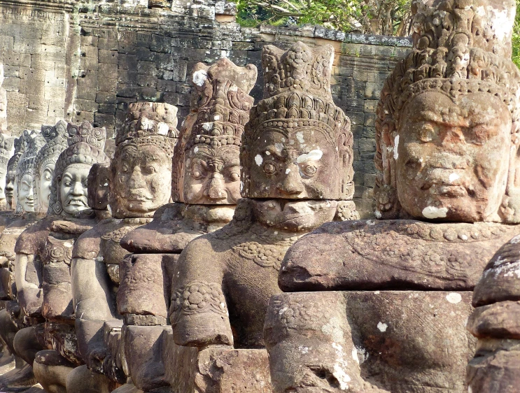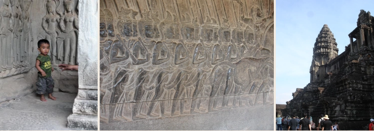 Weiter zum Phimeanakas Tempel und zur Terrasse des Lepra-Königs, der einen besonderen Schatz bereit hält, ein Relief, das perlengeschmückte Tänzerinnen und bewaffnete Krieger zeigt. Die Detailtreue und die Vielfalt bei den Gesichtern ist verblüffend. Das Relief zählt zu den schönsten Kunstwerken der Khmer-Aera.
