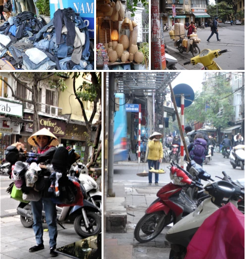 Auch in Hanoi treten die Geschäfte gruppenweise auf.