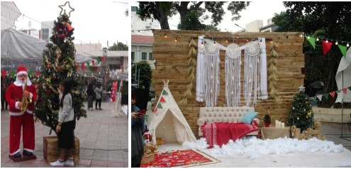 Der Weg führt vorbei an einem Weihnachtsmarkt. Schon am Vorabend hatten wir Blasmusik gehört, nun wissen wir, was der Grund war. Im Eingangsbereich steht ein animierter lebensgroßer Weihnachtsmann mit Saxophon. Eine weitere Attraktion ist eine aufgebaute Weihnachtsstube mit Tannenbaum und Geschenken. Künstlicher Schnee aus Seifenschaum entzückt die Besucher, die hier eifrig fotografieren. Im französische Viertel gruppieren sich die vielen Botschaftsgebäude und hier sind die Bürgersteige wirklich zu benutzen.