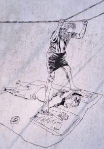 Während ich mich mindestens 10 kg leichter fühle und zu unserem Zimmer schwebe, um zu duschen und mich auszuruhen, kommt Klaus stöhnend zurück, er ist von seinen beiden Therapeuten mit Füßen traktiert und in der zweiten Hälfte mit warmem Kräutersud begossen worden. Meine Annahme, dass Männer härter rangenommen werden, erweist sich als falsch. Schon am nächsten Tag bekomme ich das am eigenen Leib zu spüren. Dieses Mal liege ich auf einer Matte auf dem Fußboden. In Türhöhe sind zwei starke Seile längs durch das Zimmer gespannt. Meine beiden kleinen und zierlichen Therapeutinnen reichen mit ausgestreckten Armen nicht bis an die Seile, sie werfen einen Sarong darüber, schlingen sich beide Enden um die Hände und dann werde ich mit den Füßen massiert. Bei der anstrengenden Massage wechseln sich beide ab. Manchmal fühlt es sich an, als schlittere sie über meinen Körper. Immer wenn die Fersen eingesetzt werden, wird es wirklich unangenehm. Wo kommen bloß die schmerzhaften Knoten an verschiedenen Stellen meines Körpers her?